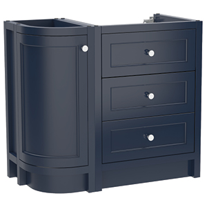 Left-handed 3-drawer & 1-door floorstanding curved basin unit
