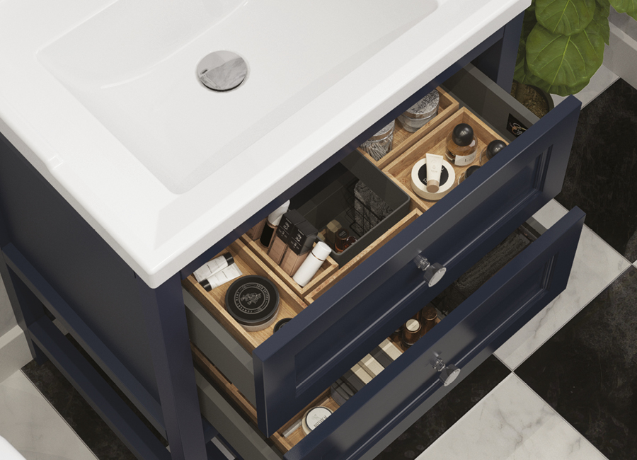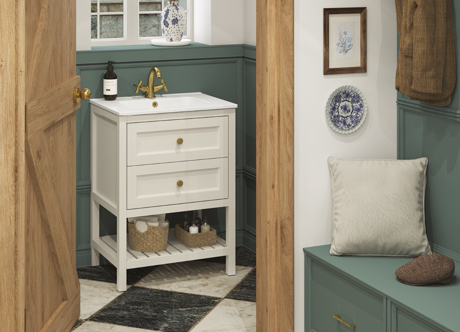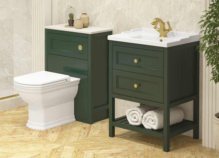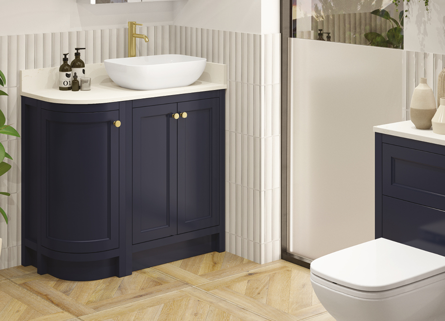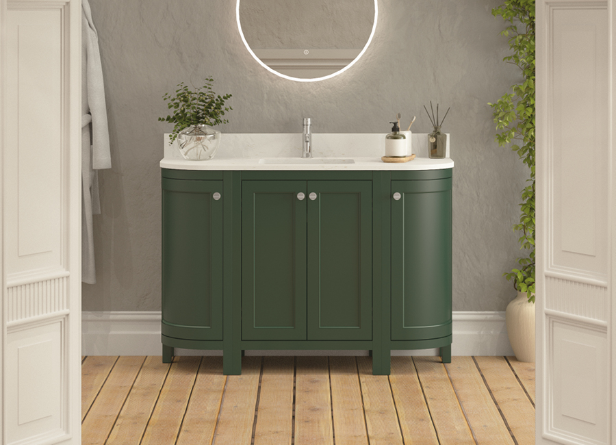 Defined by a palette of Baltic Blue, Kielder Green and Dove Stone, accented with elegant hardware and classic profiles, the collection carries an unmistakable air of distinction. It is furniture that elevates the everyday, creating bathrooms of rare character and enduring style.