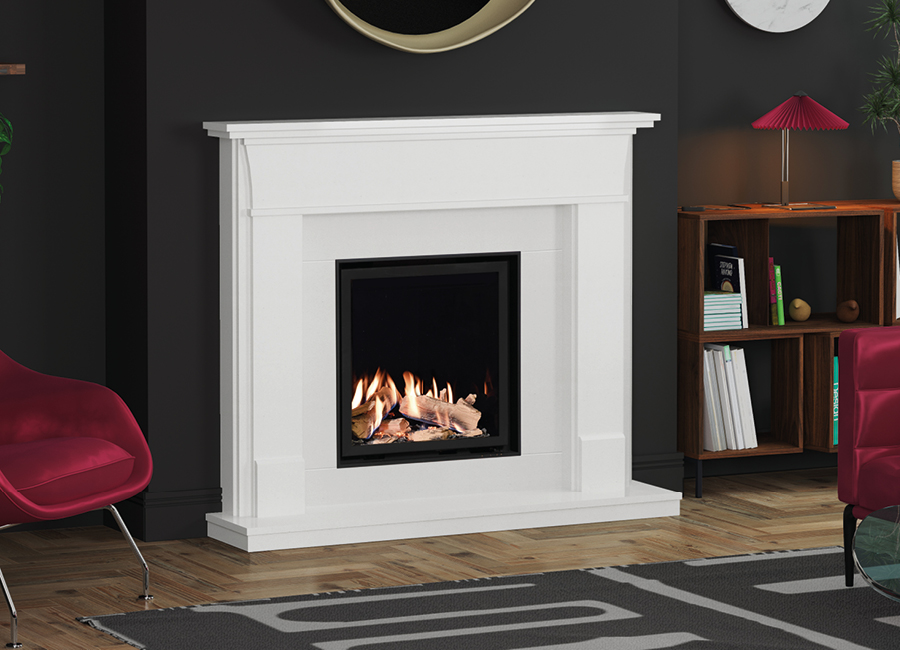 The Erdington micro marble fireplace is designed for the Calleos 600CF Gas fire. Available in White, Rigel & Pearlstone micro marble, the Erdington perfectly frames the Calleos for the ultimate gas fireplace.