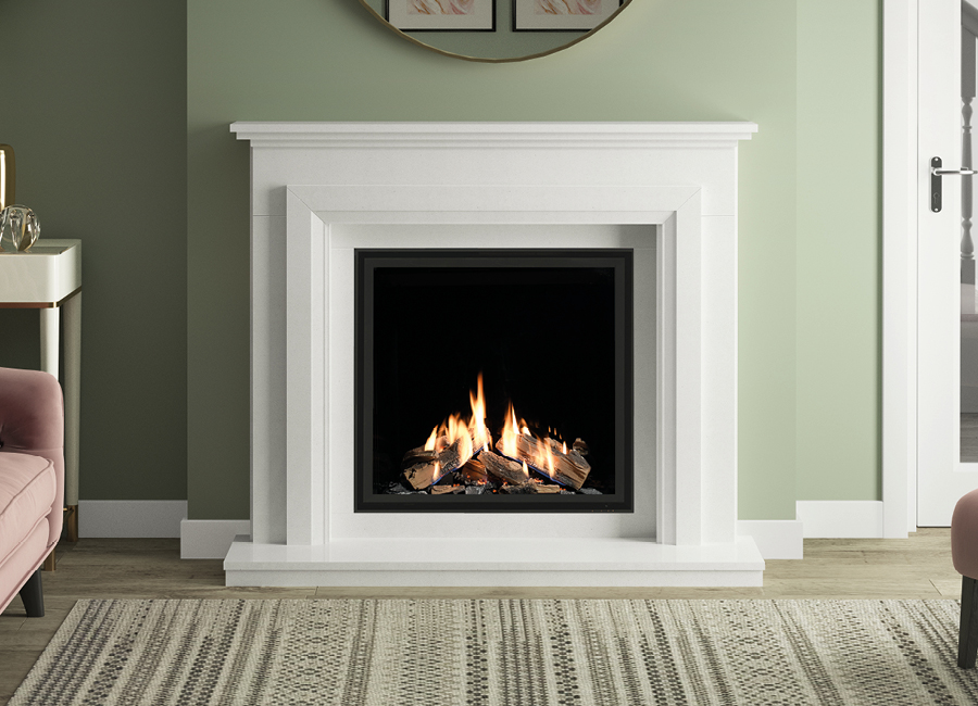 The Erdington micro marble fireplace is designed for the Calleos 600CF Gas fire. Available in White, Rigel & Pearlstone micro marble, the Erdington perfectly frames the Calleos for the ultimate gas fireplace.