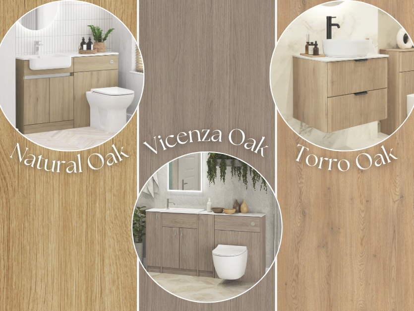 - Kirby, Newport and Embleton – Fitted furniture options, available in both Torro oak or Vicenza Oak, adding warmth and character to both modern and traditional bathrooms.